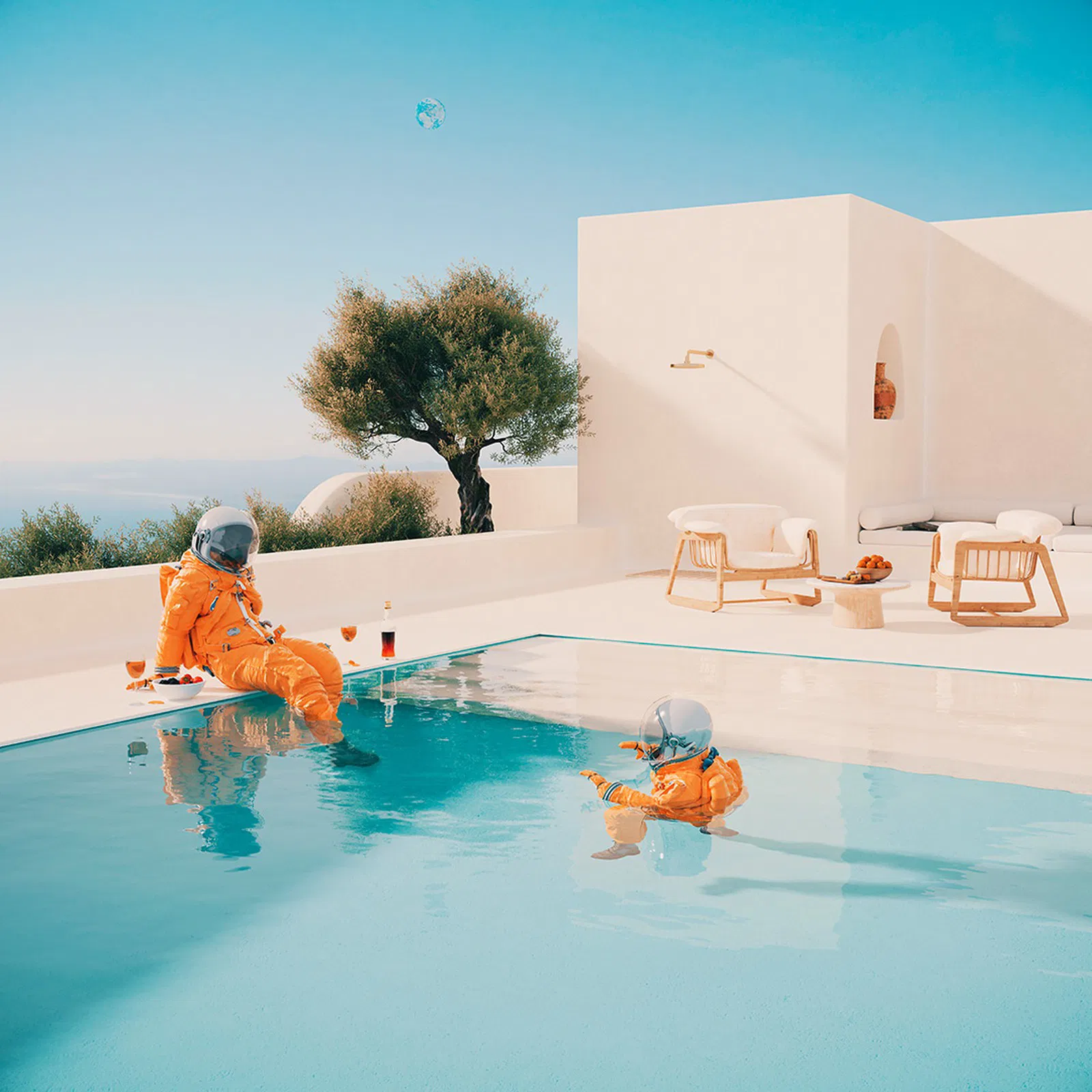 Ancient Greek architecture is reimagined under a fantastical, star-filled sky. Planets and nebulae hover majestically above classical ruins, merging the birth of civilization with the infinity […]