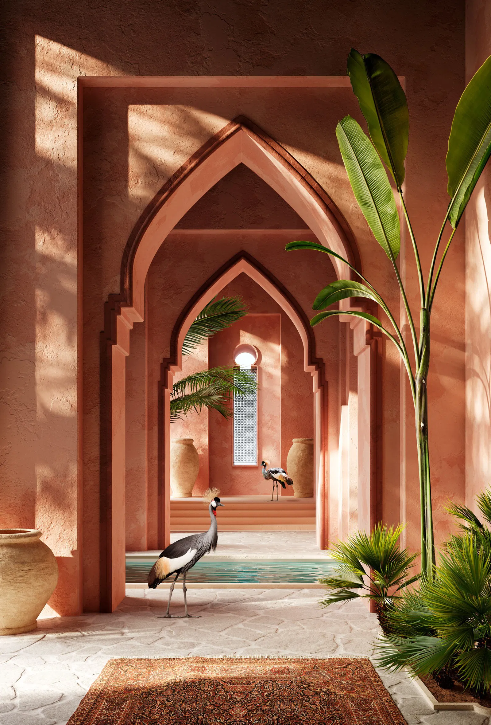 A geometrically perfect rendering of a modernist building, bathed in a surreal, monochromatic pink light. The artist explores the interplay of sharp architectural lines and soft, […]